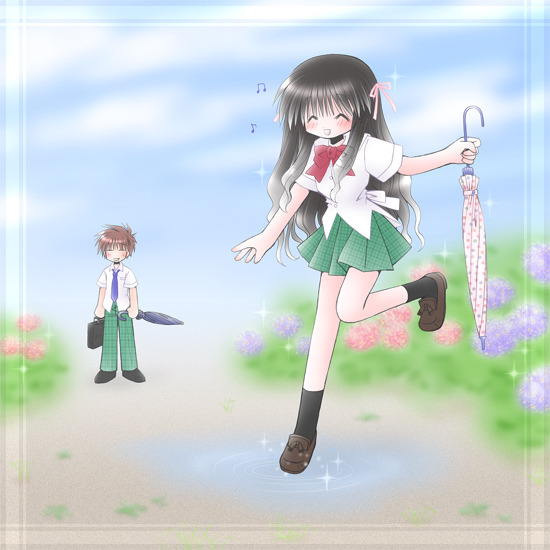 初夏の強めの日差しと 雨上がりのキラキラ感を出したかったんです。